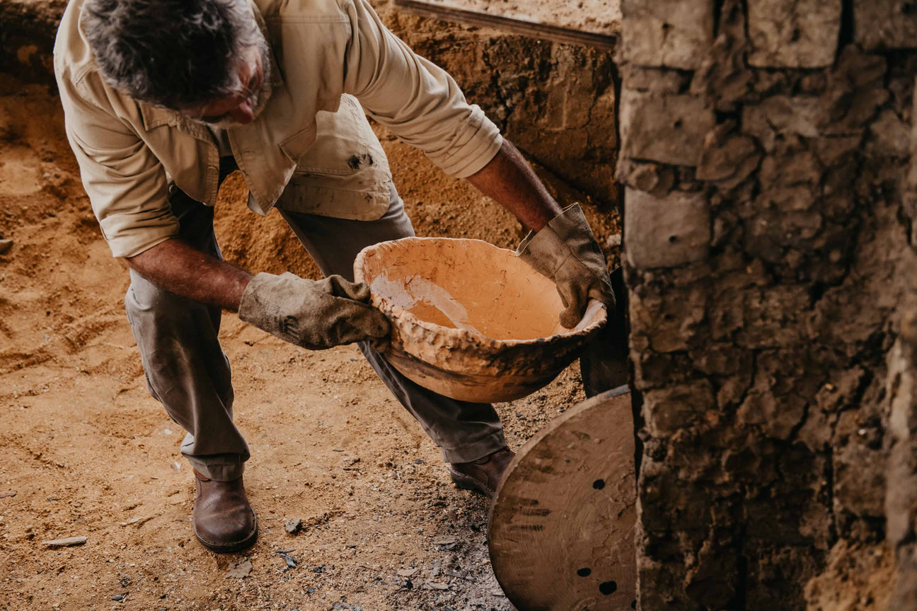 The clay Mick uses becomes vitrified - hard and non-porous - at around 1180°C. This is slightly lower than industrial stoneware, but perfect for maintaining the tactile quality of the surface without compromising function.
