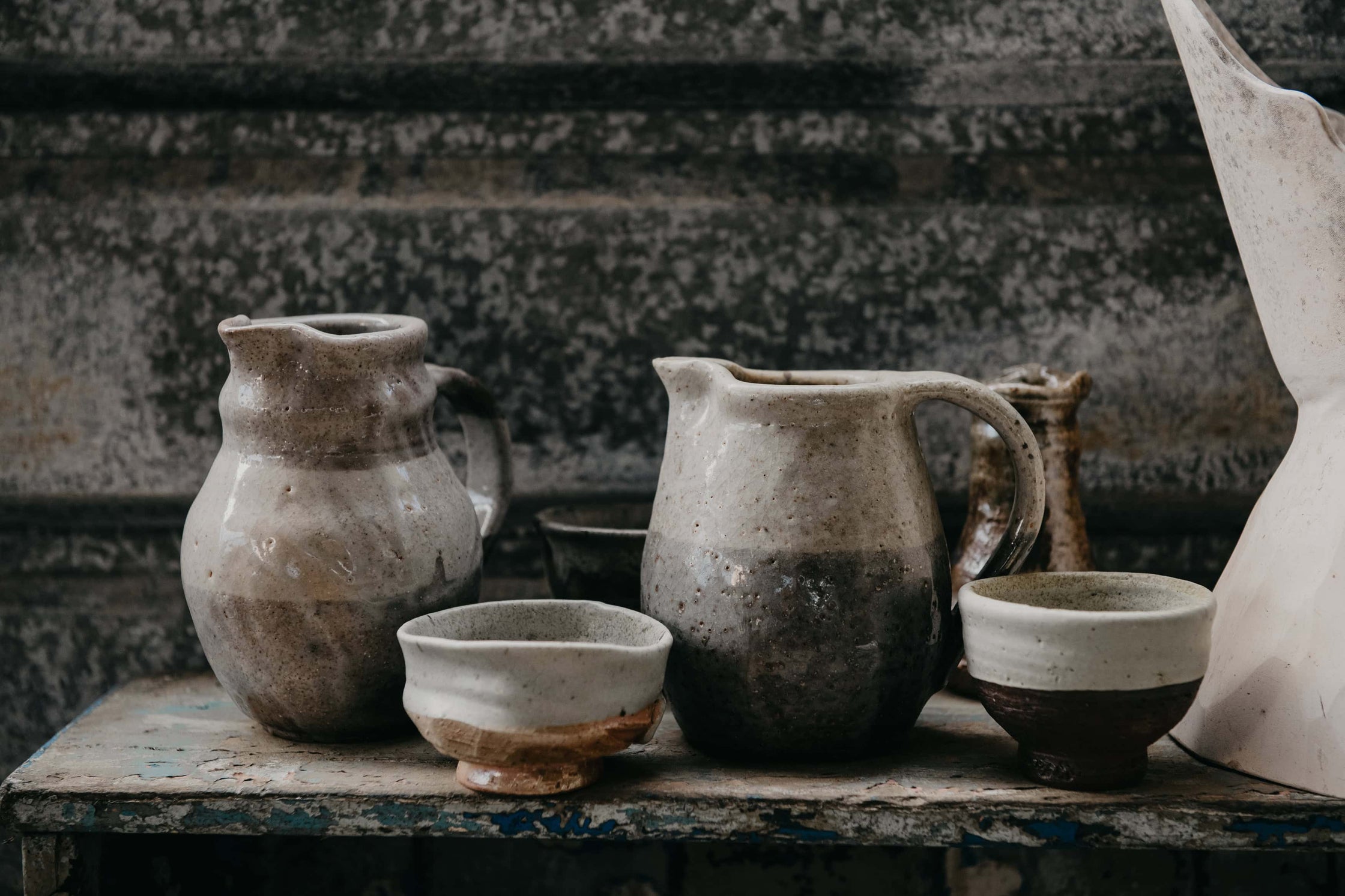 Some pieces will be finished with grinding to smooth out the base or edge; others are left raw, showing fingerprints, glaze drips, or deposits as they were formed.