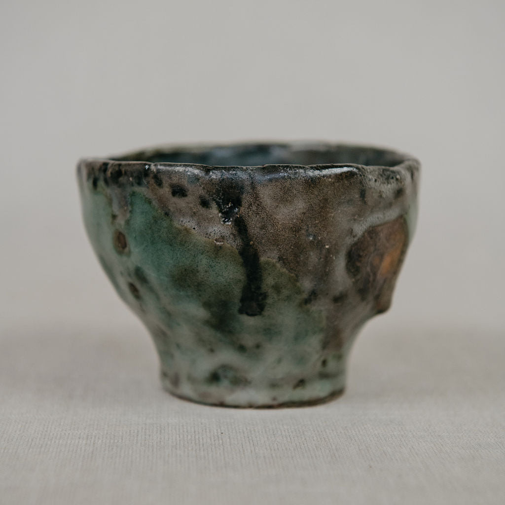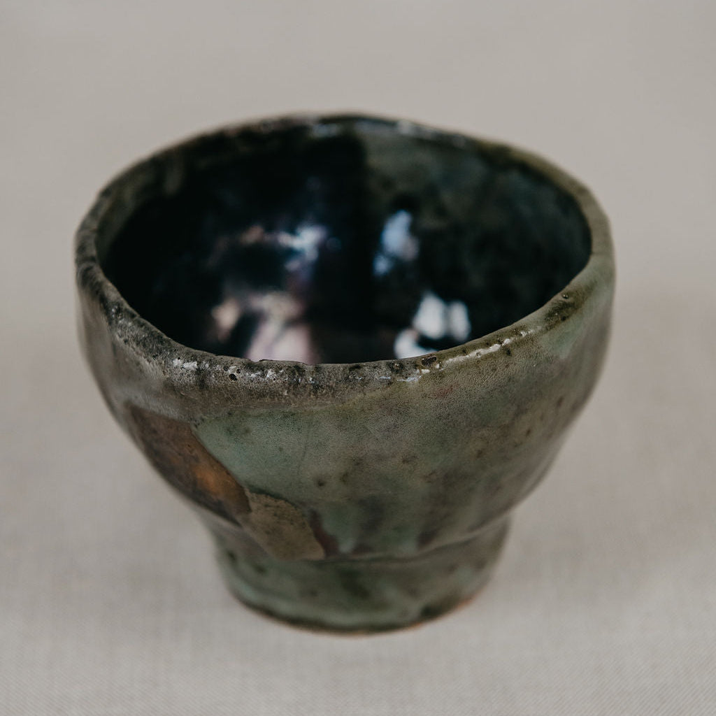 Hand dug local in situ wild clay. Unfiltered and twice fired to vitrifying temp in anagama kiln. Wood sourced from sustainable forests within 50km of kiln.