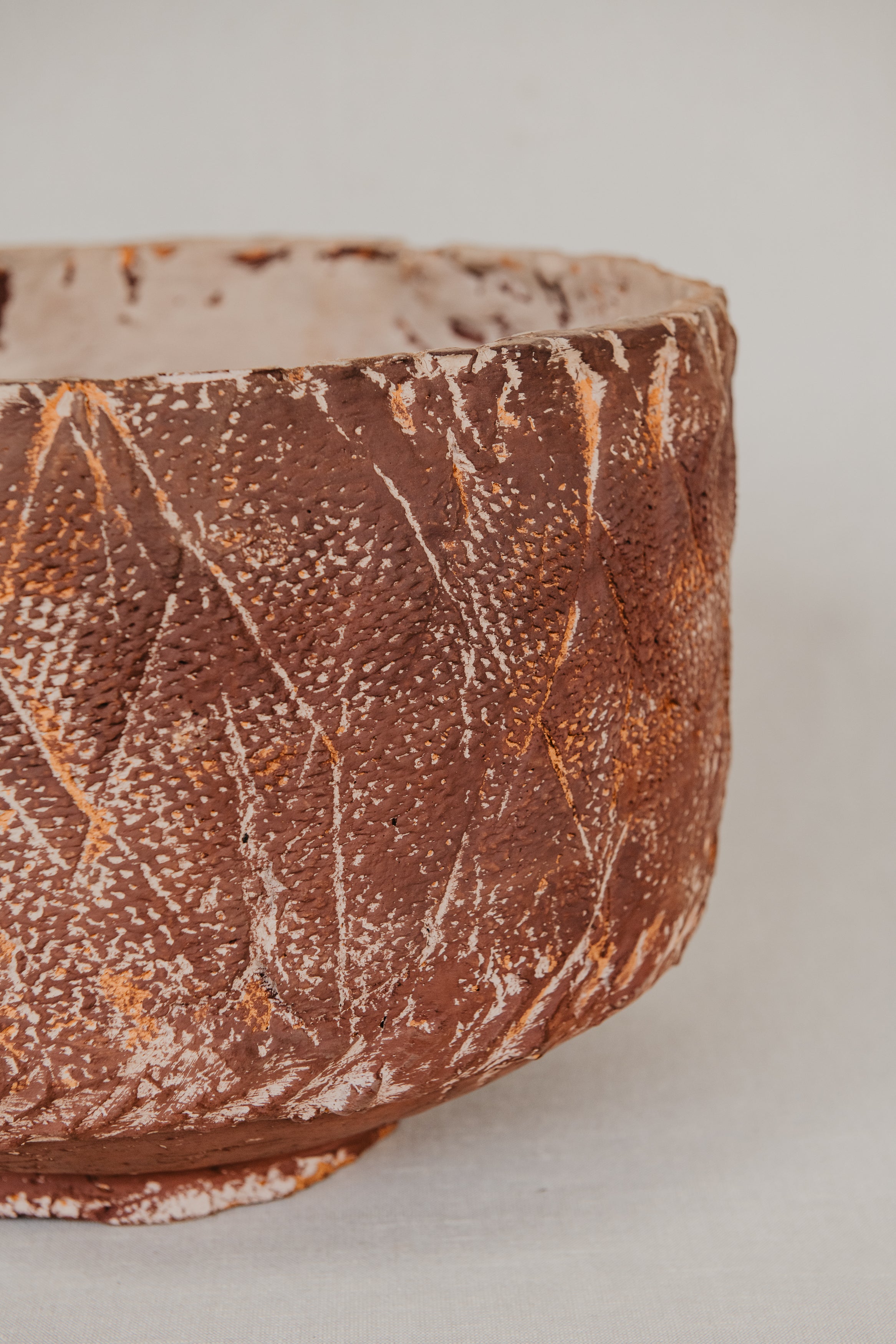Hand dug local in situ wild clay. Unfiltered and twice fired to vitrifying temp in anagama kiln. Wood sourced from sustainable forests within 50km of kiln.
