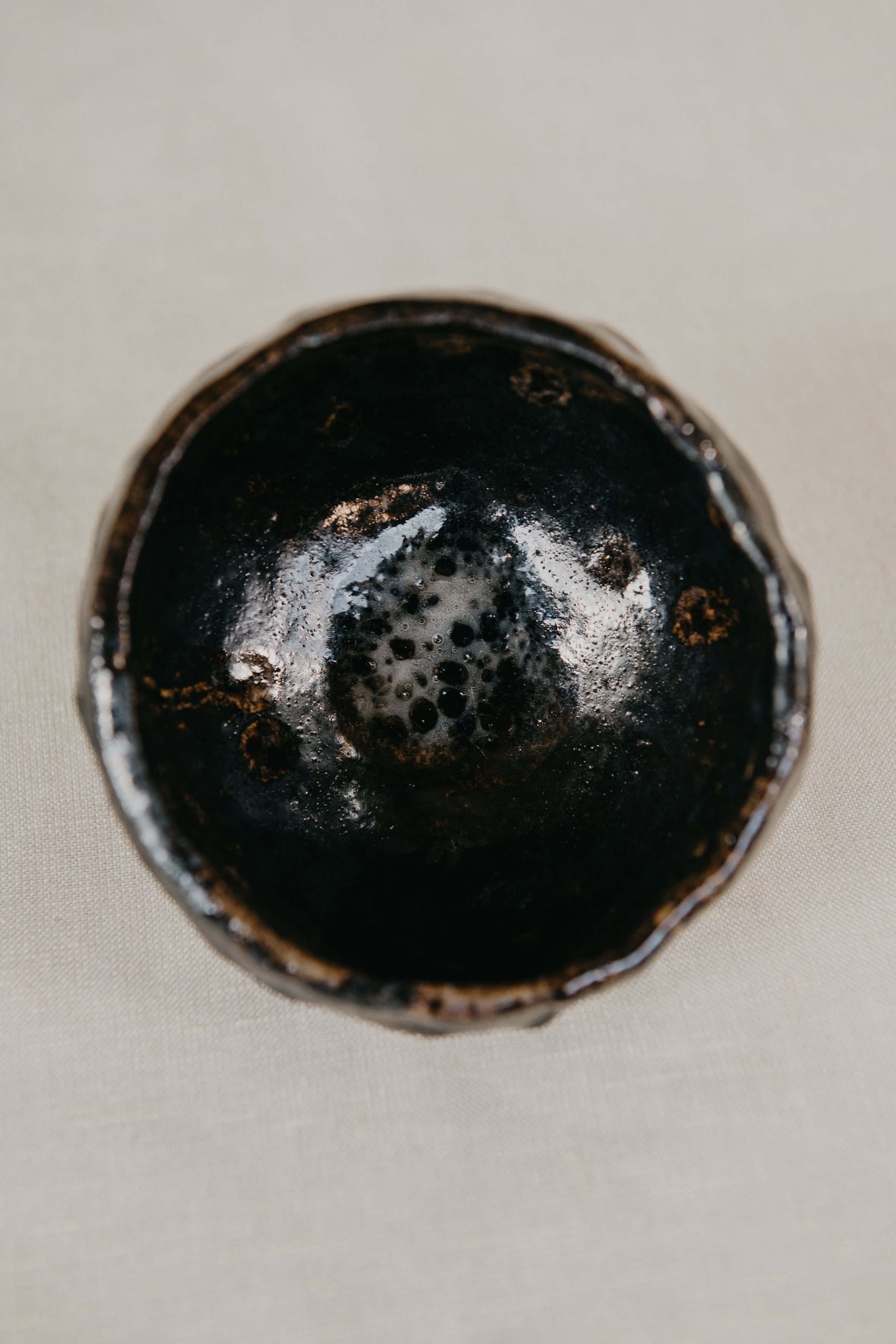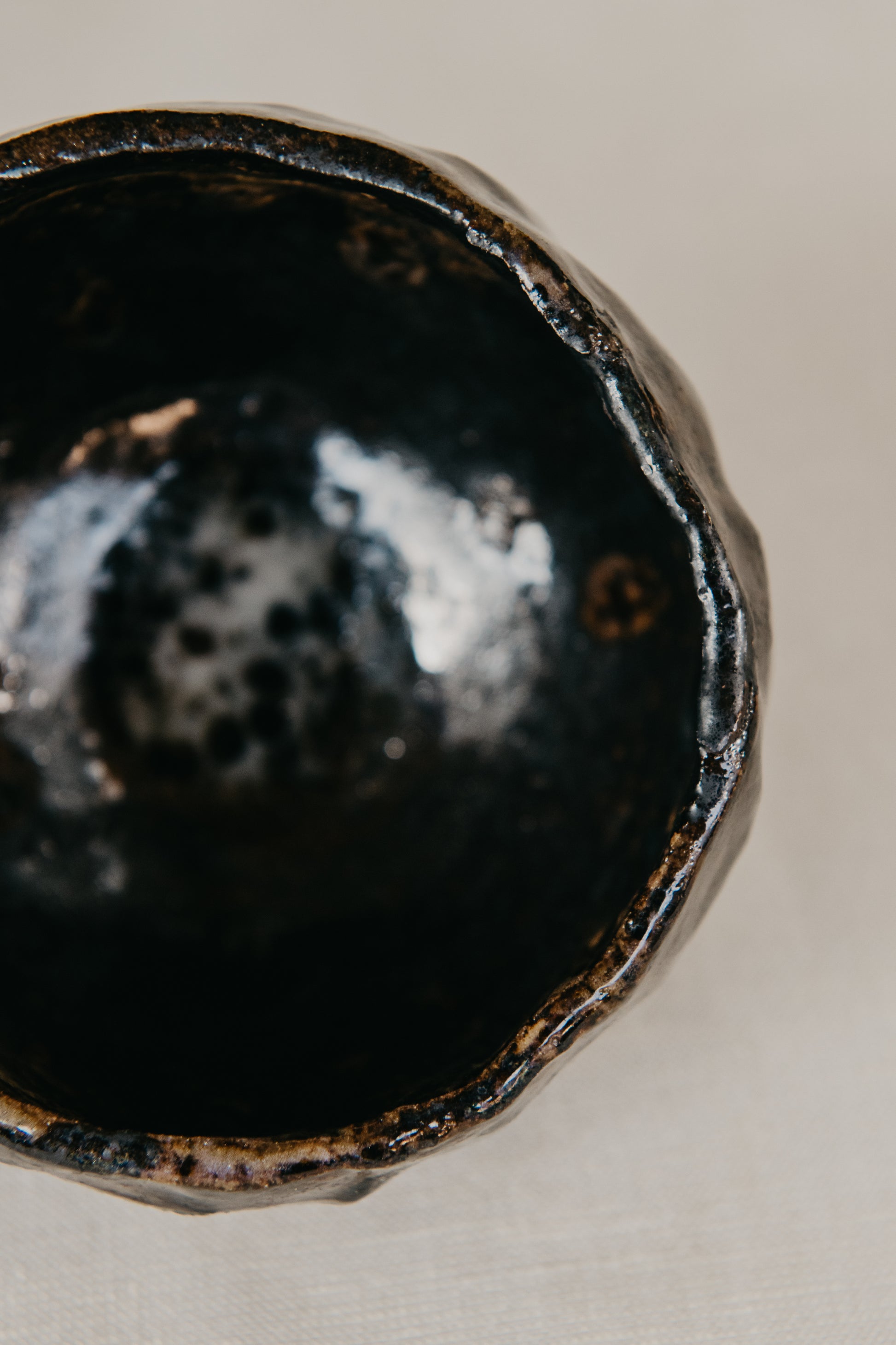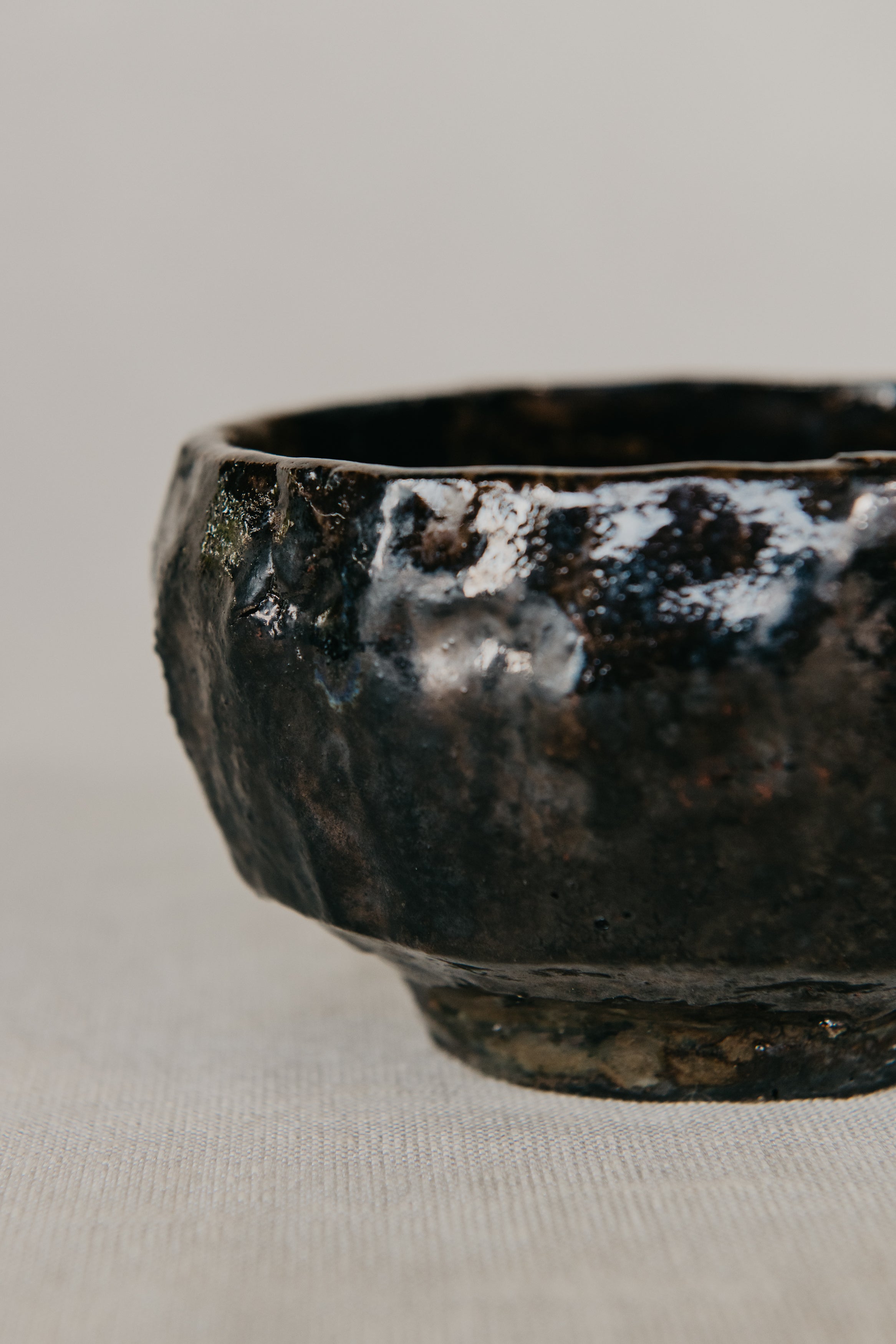Coal tones: A deep matte black glaze with soft grey undertones.