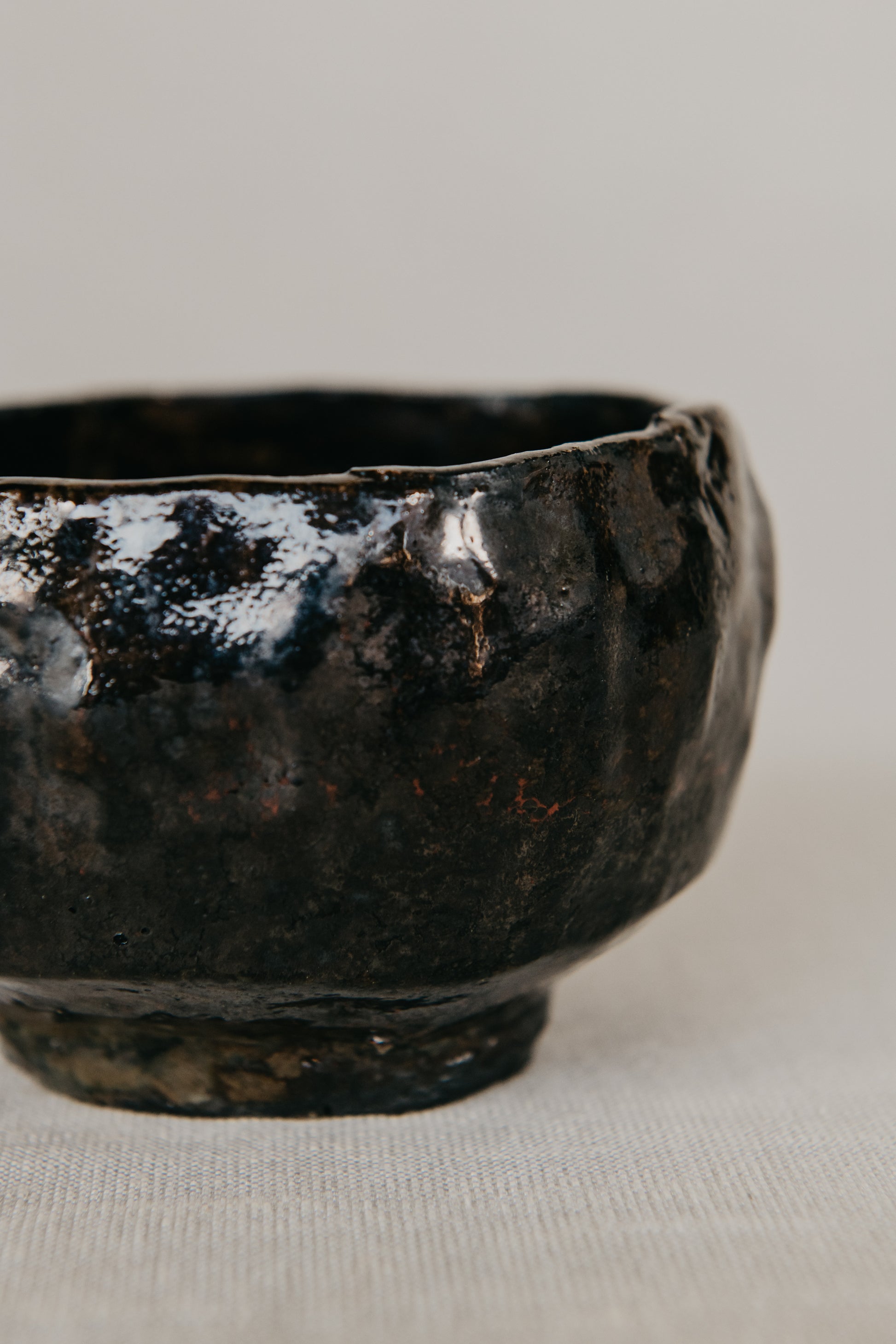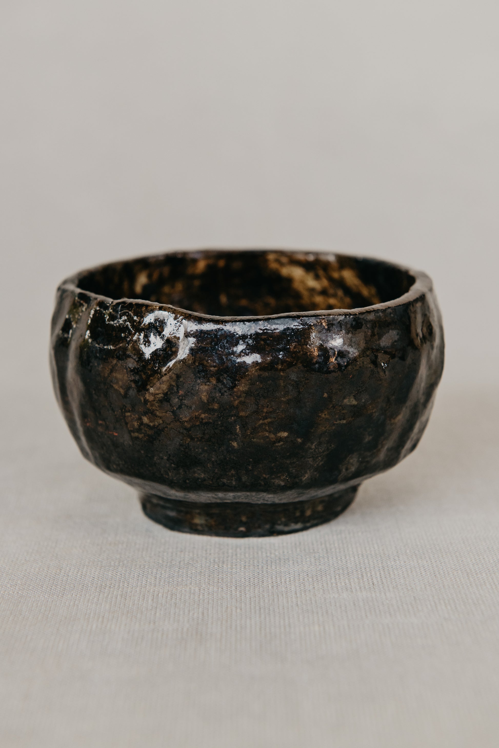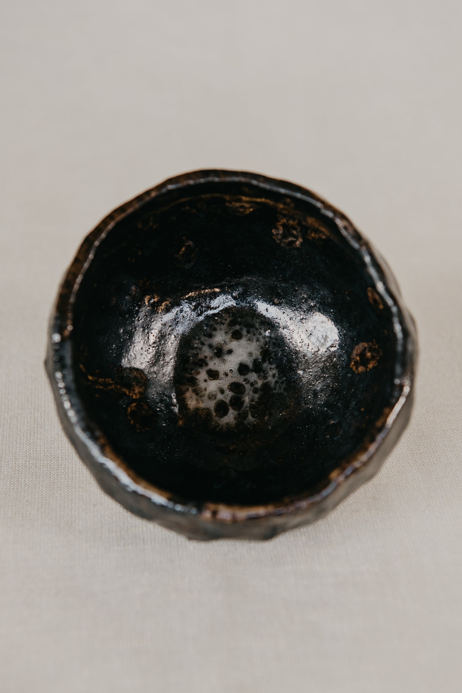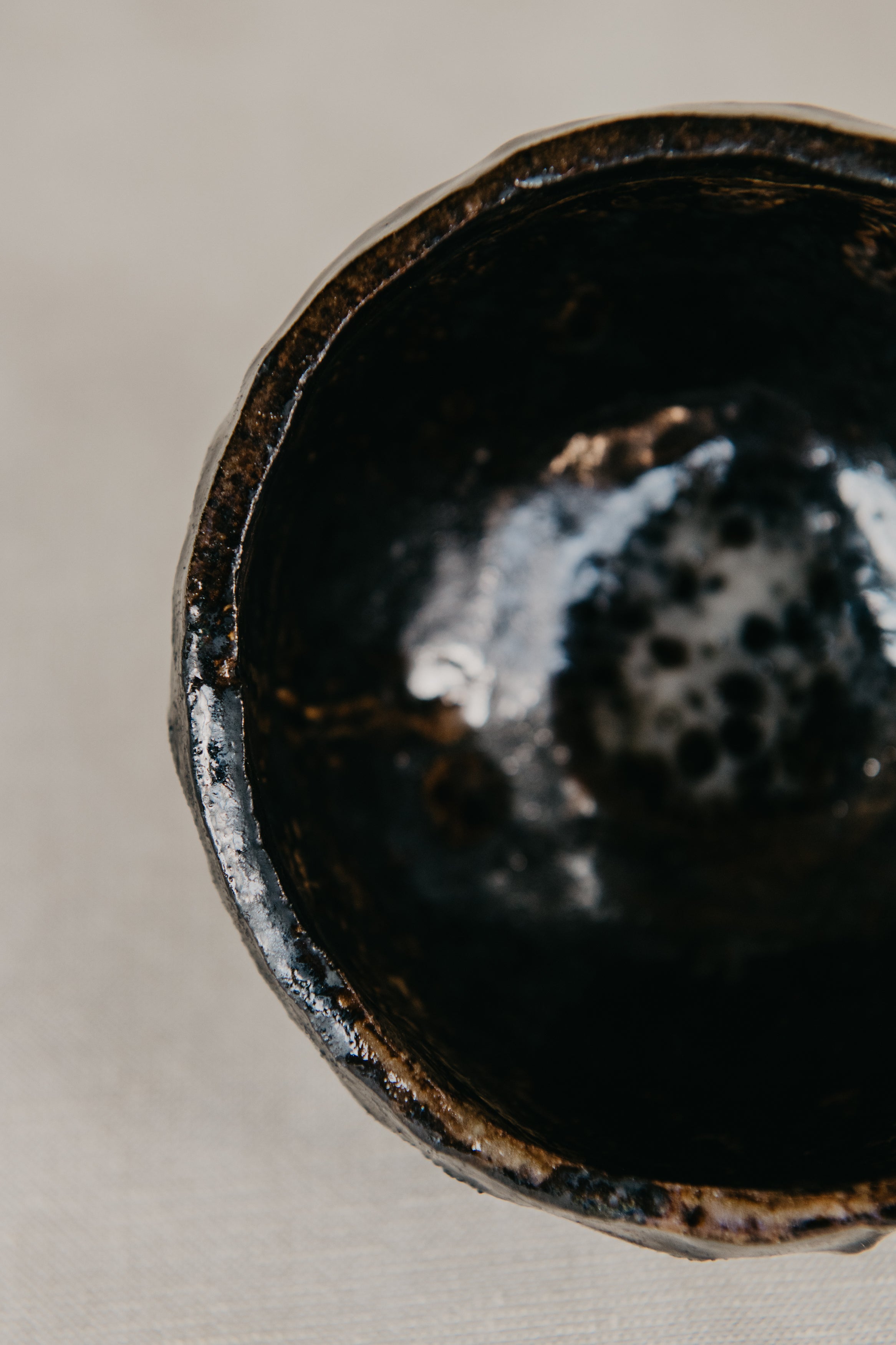 Coal tones: A deep matte black glaze with soft grey undertones.